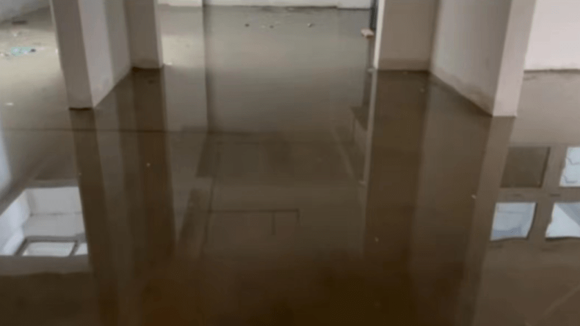 业主李强带记者来到地下二层车库的一处房间。这里地面依然有明显积水,而且墙壁和地面,都暴露着大量线缆,他担心有漏电危险。“这儿有积水已经很长时间了,在这轮暴雨之前就有。暴雨过后,积水更严重了。”