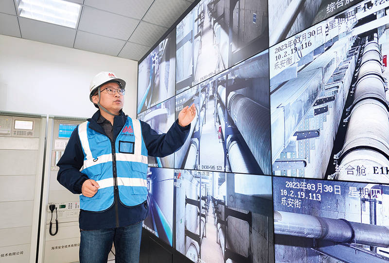 中国雄安集团年轻干部在雄安容东地下管廊监控室工作(2023年3月30日摄) 朱旭东摄/本刊