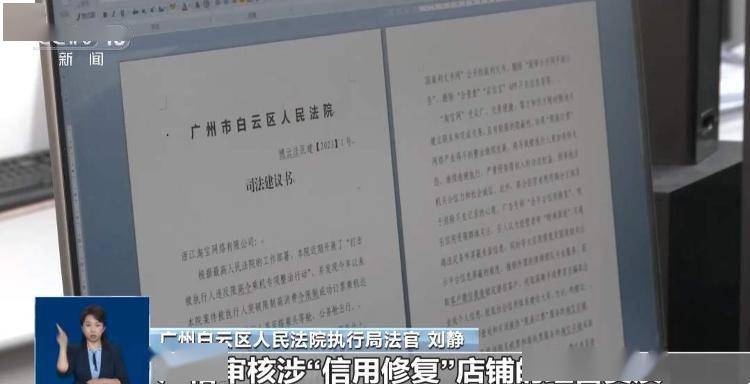 广州白云区人民法院执行局法官 刘静:主要就立即整改下架“限高订票”商铺,严格审核涉“信用修复”店铺的经营资质,屏蔽违规关键词,严格审核清理违规广告,加大常态化巡查监控力度等五个方面给出了具体的建议。