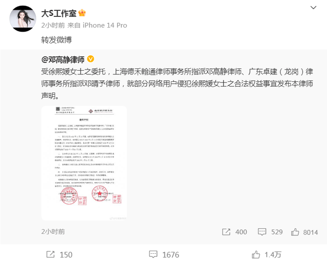 尽管大S是当事人,但是她有一个特点,那就是很少发声,每次都有代言人,不是律师就是妹妹小S,要不就是S妈或是娱记葛斯齐。