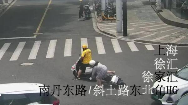 另一辆外卖电动自行车带倒