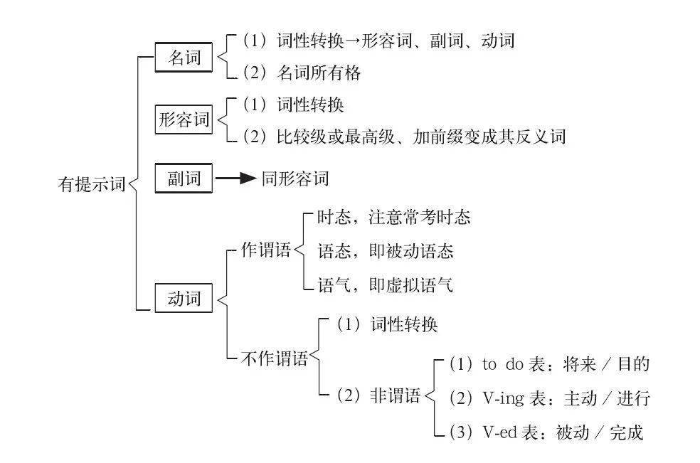 又如,语法填空题是英语考试中的常见题型。针对学生综合填空能力较弱的问题,教师可以引入思维导图,让学生利用上下文、语境、固定搭配、提示词(如图 3)等,找出有用的信息,猜测空白处的内容,分析英语语法填空题的解题规律,挖掘学生的潜力。教师通过课堂思维导图教学设计,能够进一步提高学生的逻辑思维能力,激发学生复习的内驱力,提高课堂复习效率。