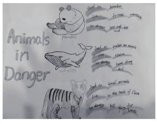 本课的能力目标是“运用所学句型与同学谈论濒临灭绝的野生动物”。情感目标是增强学生学习的信心,激发学生的学习兴趣。基于此,教师可以绘制知识树,准备生词卡片,然后,向学生展示课文内容的思维导图,并把学习任务明确展示出来(如图 1)。 思维导图采用文字与图片相融合的形式,把课文的核心部分显示出来,直观又明确。同时,教师可以让学生在观察思维导图的基础上,在思维导图上进行勾画,开展课堂复述活动。