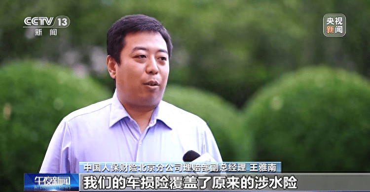 中国人保财险北京分公司理赔部副总经理 王雅南:费改之后,我们的车损险覆盖了原来的涉水险,所以此次洪水受灾的车辆只要购买了车损险,保险公司均可以进行赔付。