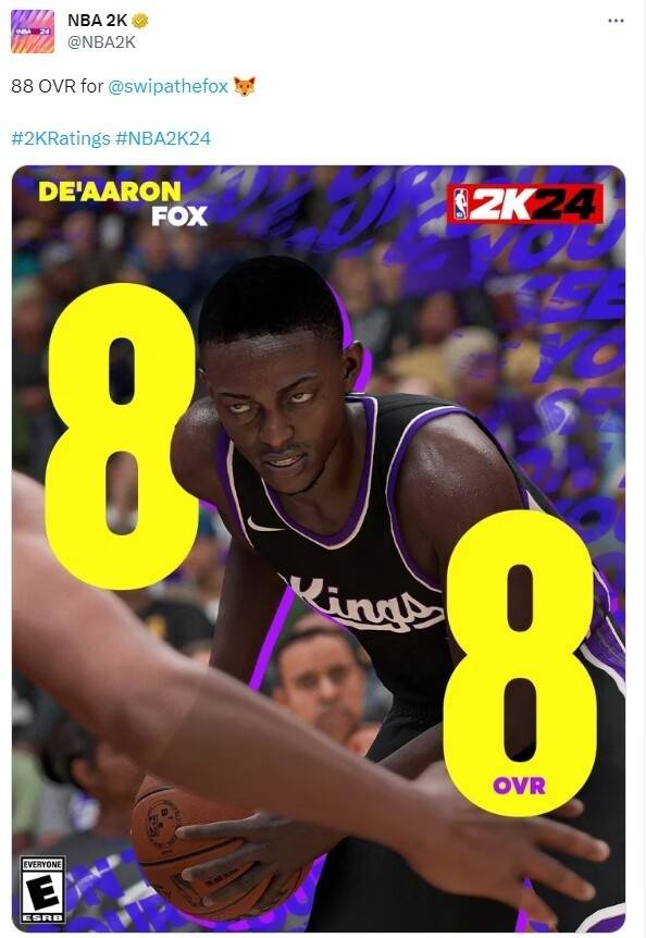 相比于2K23的89,福克斯今年的2K初始能力值下降1点。