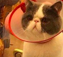 术后的伤口在没愈合期间都不能碰水,也不可以舔,所以建议给它买一个头罩。就像这样