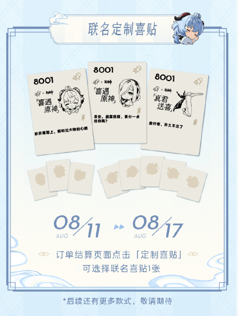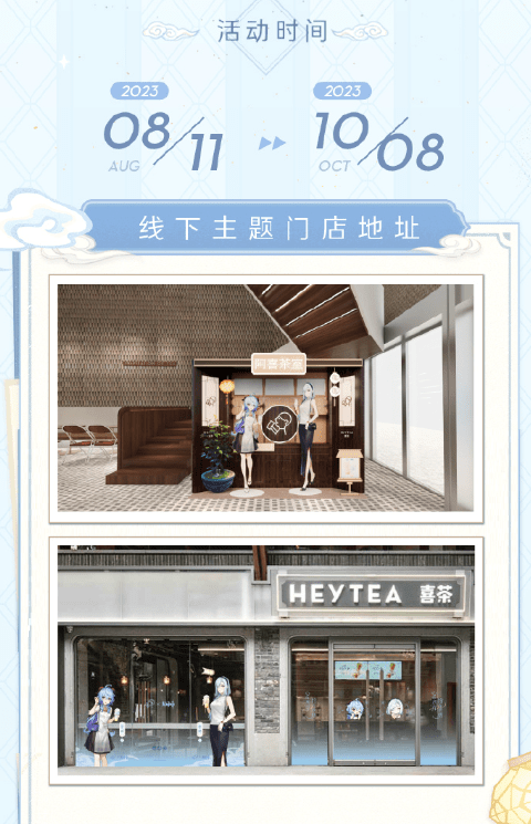 活动时间:8月11日-10月8日,期间主题店会一直保持有原神联动相关的装饰。主题店地址可在小程序或者官方公告查看,主题店并不多,羡慕那些城市有的玩家啊~