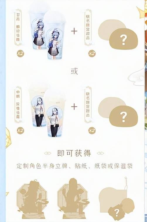 说明:限定套装开启,会有两款饮品加两款甜品,周边含半身立牌,贴纸,以及纸袋或保温袋,这个可以预见会超多人购买,建议到时先调好闹钟额。