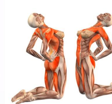 把髂腰肌拉开,大腿前侧肌肉拉开,然后是肩膀打开,肩膀就涉及到我们的胸大肌,胸小肌还有肩头的,这些肌肉全部打开之后,你才能做好骆驼式,因为骆驼式是我们身体前侧一个强烈的伸展,所以这些地方伸展不了,以及下半身伸展不了,就会让你的腰部代偿,上半身打不开,也会把力量放在腰上,所以把下半身和上半身全部打开,你的腰部才能完全的释放,更好的建立他的空间,从而去完成一个优雅的后弯。
