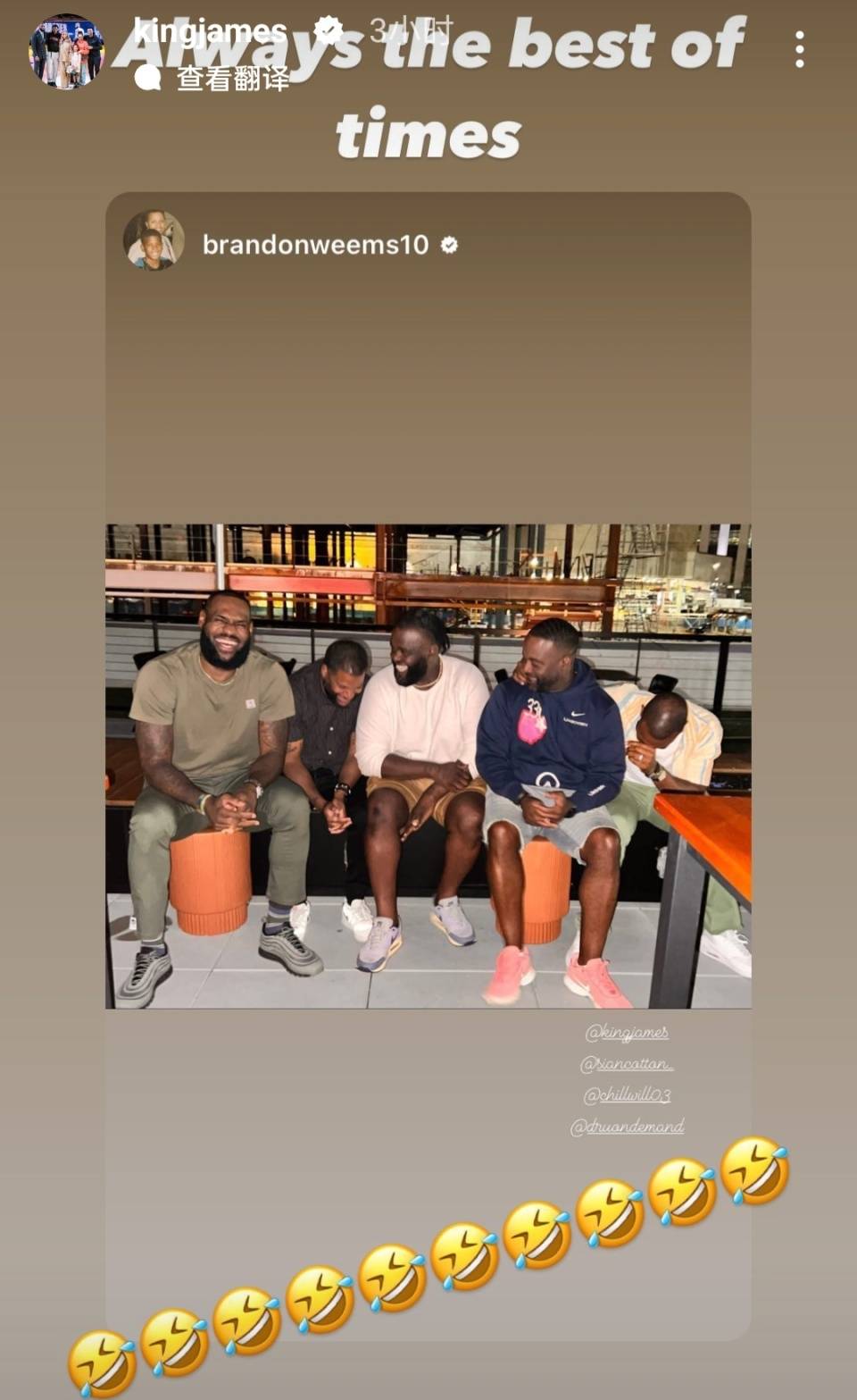 北京时间8月14日,湖人球星詹姆斯连续更新社媒,先转发了韦德在名人堂庆典上示爱父亲的动态, 并配文写道:“太酷了!”随后又转发了高中队友的最新合影,配文是“总是最好的时光”。很快有知情人爆料,詹姆斯在韦德入驻名人堂庆典的当天,参加了高中队友的聚会。