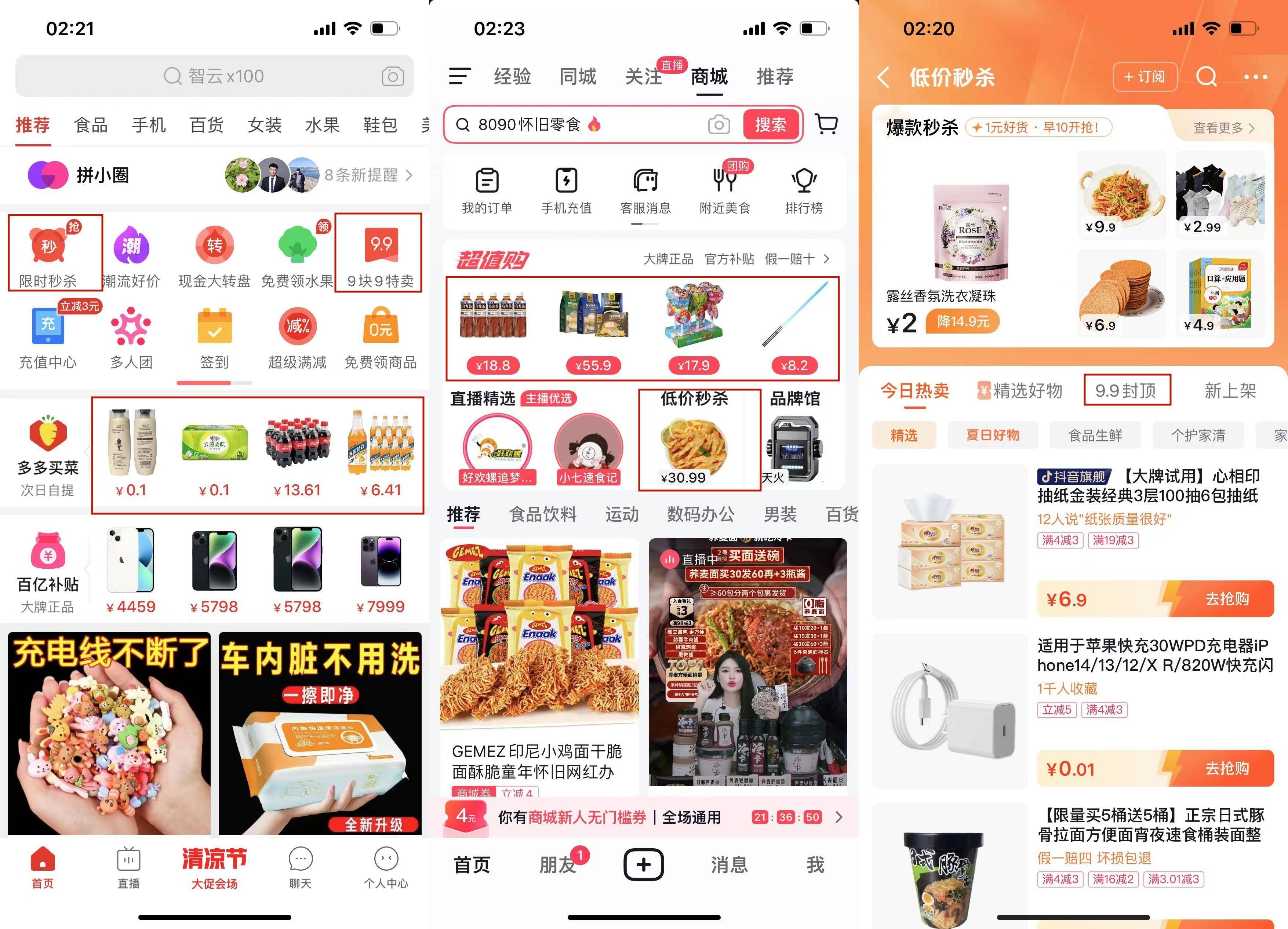 左一:拼多多;右二:抖音商城、低价秒杀;
