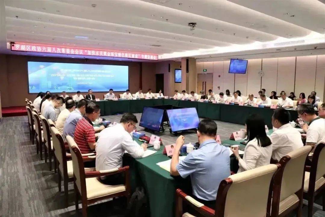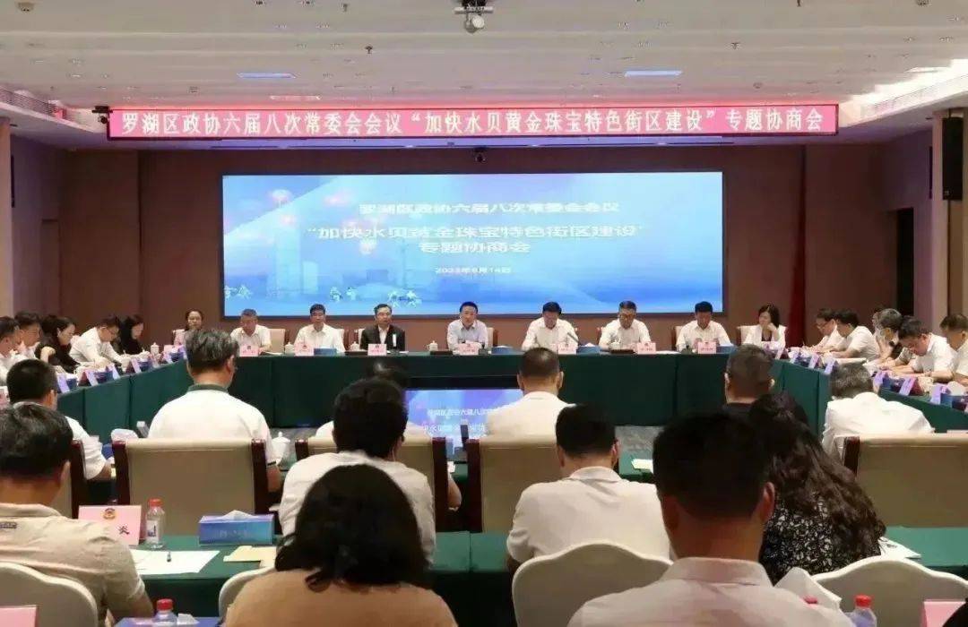 8月14日上午,罗湖区政协召开六届八次常委会会议,围绕“加快水贝黄金珠宝特色街区建设”开展专题协商。罗湖区委书记、区长范德繁出席会议并讲话,区政协党组书记、主席柳光敏主持会议,区领导赖建华、罗力涛、廖锦文、罗建林、杨明、梁真、黄海燕参加会议。