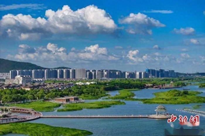 资料图:航拍苏州太湖湖滨国家湿地公园,蓝天碧水生态美。泱波 摄