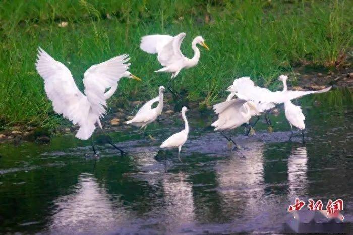 资料图:在山东省日照市五莲县洪凝河,白鹭在翩翩起舞。王义全 摄