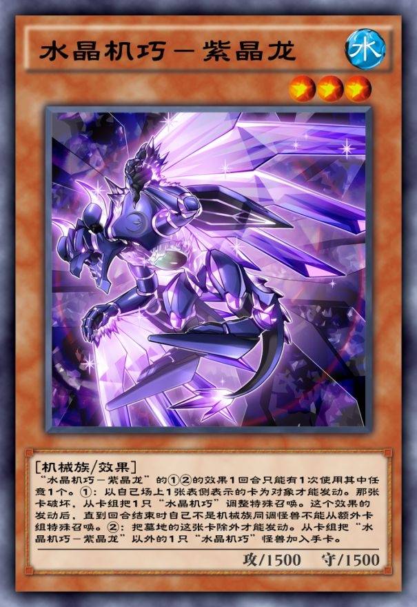 水晶机巧比较核心的卡牌就是柠晶龙这张卡,这张卡无论是手卡还是在墓地存在,都可以通过丢弃一张其他水晶机巧怪兽来将柠晶龙守备表示特殊召唤,之后还会炸掉自己场上一张卡。而且这张卡被战斗或者效果破坏的话,可以从卡组守备表示特殊召唤一只水晶机巧怪兽。而紫晶龙一般都是配合柠晶龙送墓的卡牌,毕竟这张卡送墓之后可以通过除外来从卡组检索其他水晶机巧怪兽加入手卡,在不占用通召的情况下便能灵活调动水机资源,这就是这套卡组的优势所在。