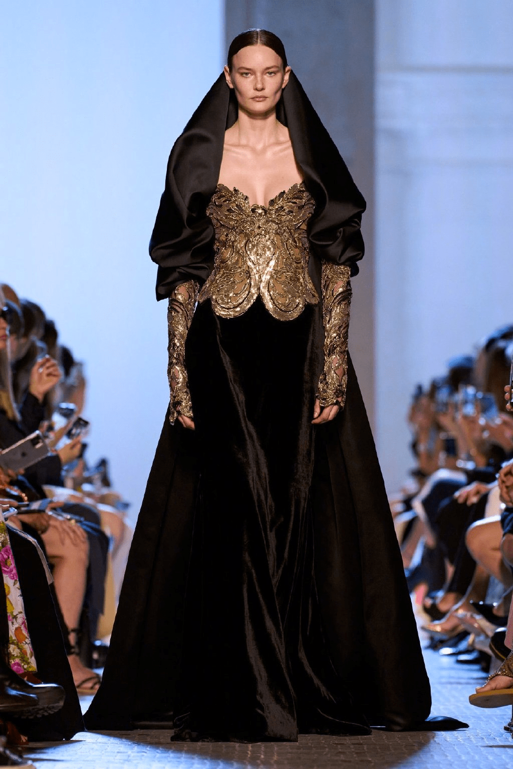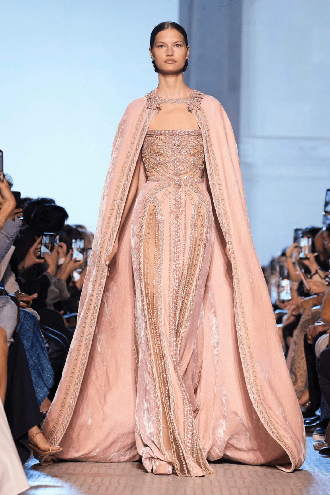 时装,是永远能将女性想象力带入幻想领域的一种方式。Elie Saab 2023秋冬系列的灵感来自于以中世纪为背景的时代电影。中世纪修道院的斗篷、拖尾、露出女性漂亮的肩颈线条,成为这一季主打。错综复杂的奢华刺绣在雪纺上呈现,甜美丝绸礼服上被镶嵌了珍珠,依然是那个矜贵而华丽的高贵仙女。