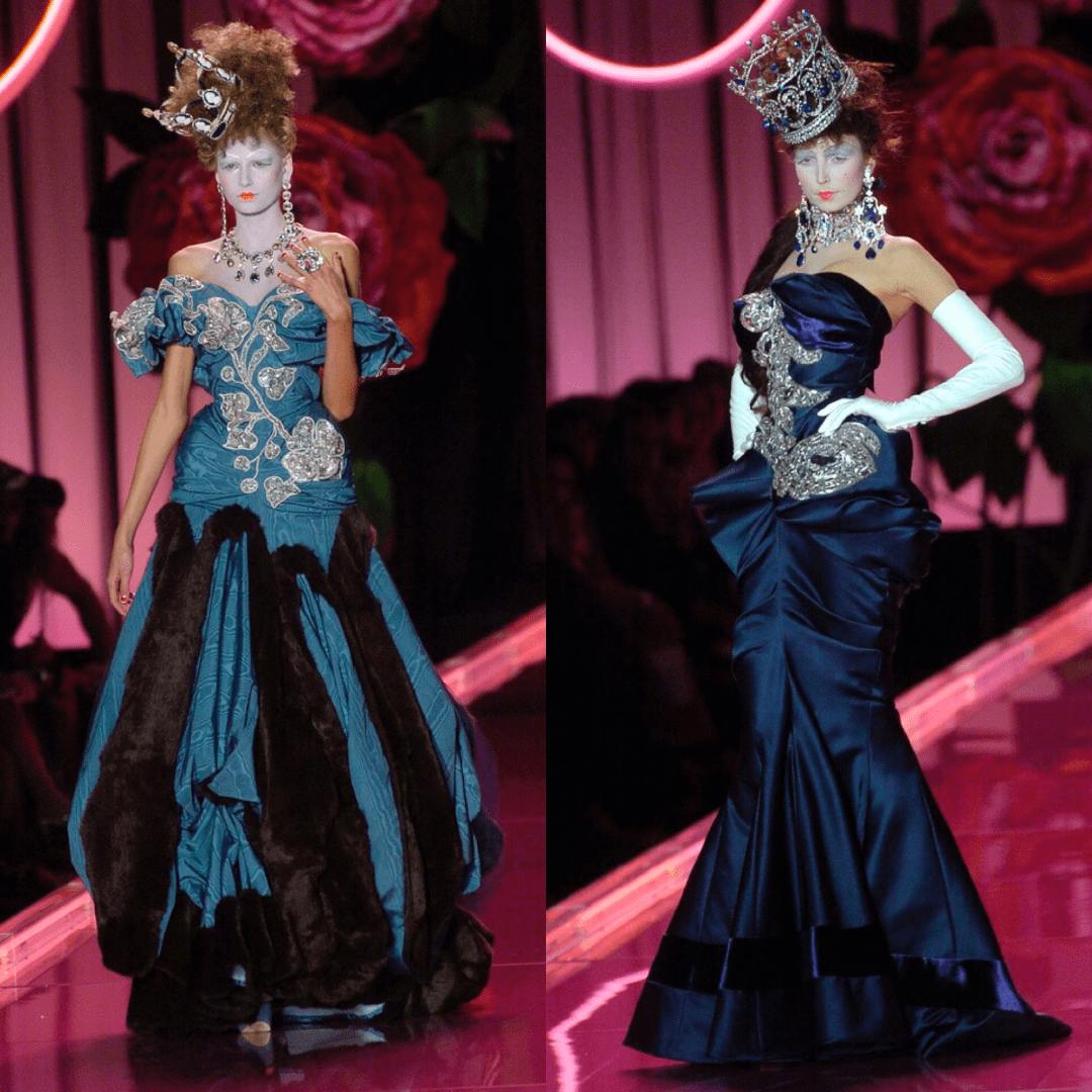Christian Dior 2004系列,利用狂放奢华细节、工艺精湛的面料,搭配皇冠、权杖、浓艳的妆容,还原了18、19世纪皇族名流彻夜笙歌的派对。成为了现代宫廷风的经典秀场。