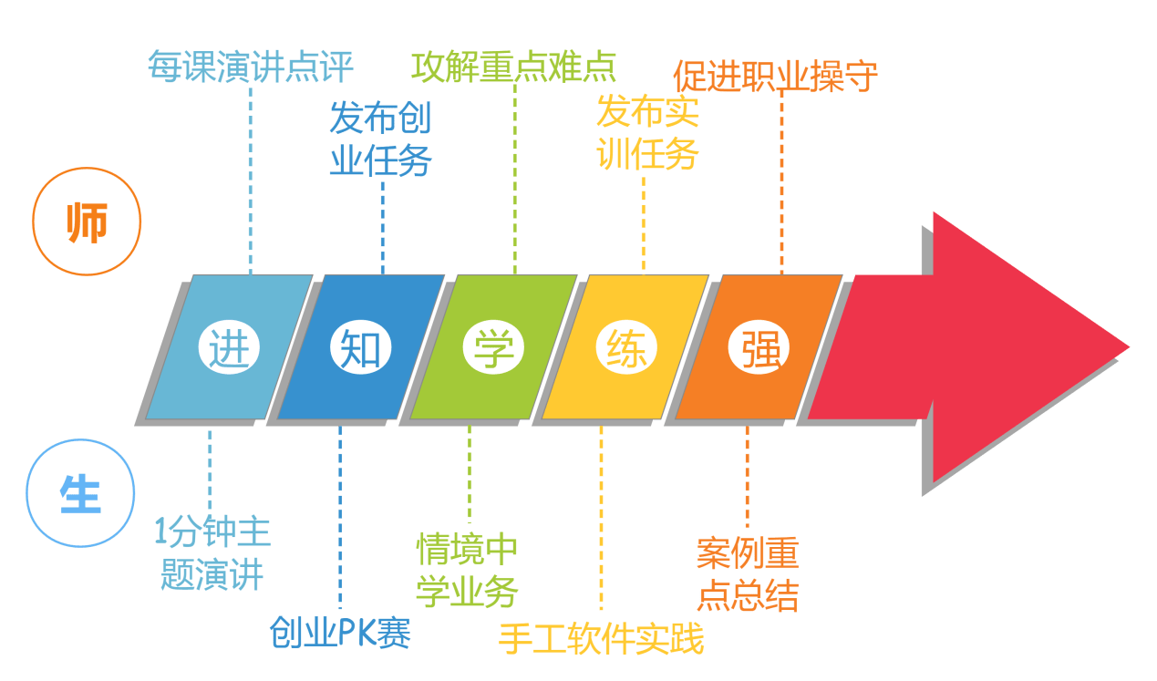 在日常教学活动中,教师应该熟练的掌握教学节奏,避免课程拖沓、运行缓慢,并且不断的优化教学过程。在教学优化的过程中,应采用更为合理的、递进式的教学过程设计,沿着先实践后理论、先知其然后知其所以然的改革路线,将教学过程设计为更为合理的进阶式教学过程,一共细分为五个阶段: