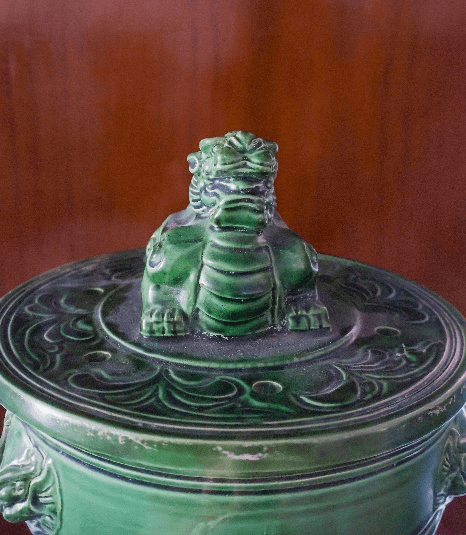 甪端象征祥瑞,流行于明清,多被塑于香炉之上,或直接塑作香炉。将甪端头部掀开,中空的腹部便可储放香料,燃香后,袅袅细烟从口部镂空处散开,在沁香中彰显威仪。