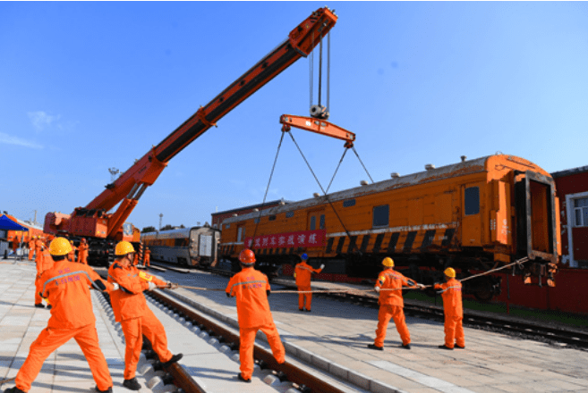 “通常情况下,如果说脱线的车辆比较少,而且脱线的距离也比较近,一般情况下是会采用顶复或拉复的方案,这个方案比较快捷。”魏玉林指出,如果涉及到车辆比较多,脱线的距离也比较大,就会用吊机进行吊复,吊机吊复作业时间相对比较长一些。