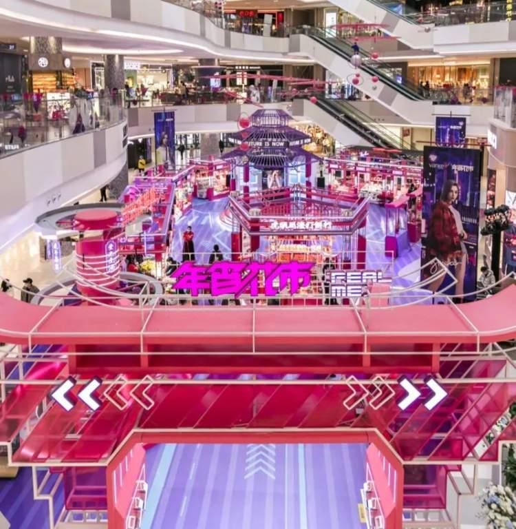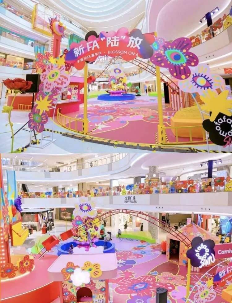 比如,自2017年起,七宝万科在春节期间都会打造“年宵花市”,每年主题各异,如盛唐风华主题、赛博朋克风格等,传承中带着新意。而近两年,“萌宠乐园”限定集市同样备受欢迎。这不仅帮助吸引客流,不同的营销活动定位不同,也为商城内各业态的品牌提供更多展示平台。