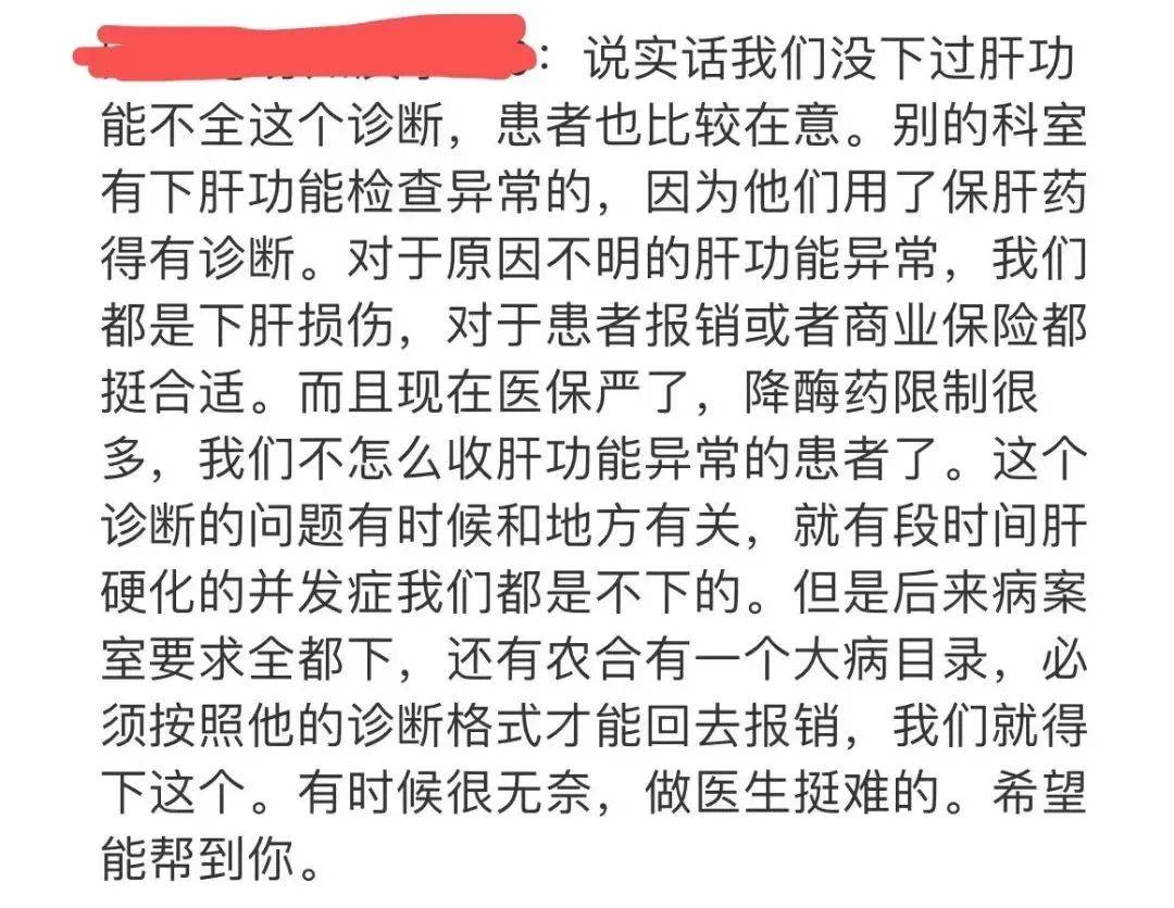 比如,关于肝功能不全的诊断,笔者曾见过这样一个答复。
