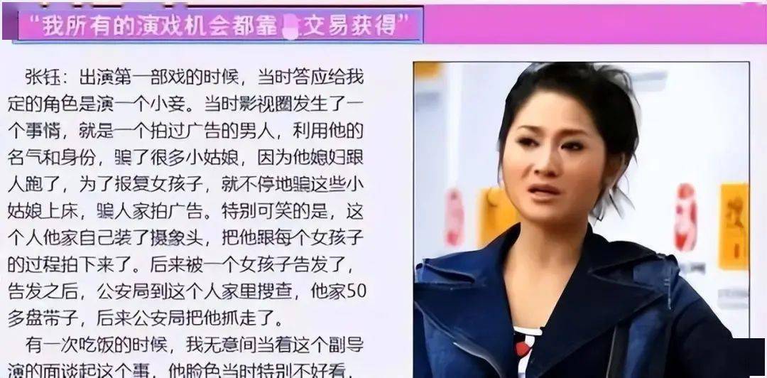 记得那是零几年,张钰毫不畏惧地揭示了这些“潜规则”,立刻在娱乐圈内引发巨大震动。