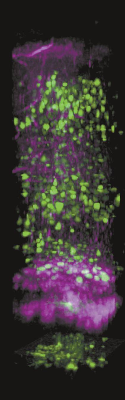 微型化三光子显微镜拍摄的小鼠大脑成像图