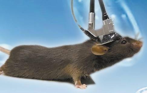 2021年初,重量仅有2.17克、直径仅有3.4毫米的新版微型化三光子显微镜诞生,它可以佩戴在小鼠头上,同时不影响小鼠的自由活动。在活体成像实验中,当小鼠佩戴上显微镜探头后,一旁的屏幕上呈现出了小鼠大脑神经元活动的影像——从小鼠大脑皮层表面向下看到了第一至第六全皮层,穿过致密的胼胝体,最终看到了海马体的神经元在闪烁。