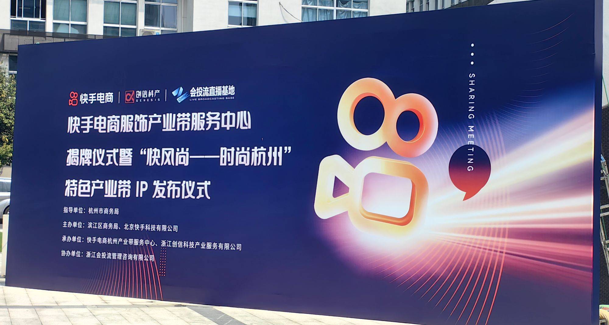8月16日,快手电商服饰产业带服务中心揭牌仪式暨“快风尚——时尚杭州”特色产业带IP发布仪式在杭州市滨江区举行。本次仪式由杭州市商务局指导,滨江区商务局、北京快手科技有限公司主办,快手电商杭州产业带服务中心、浙江创信科技产业服务有限公司承办。