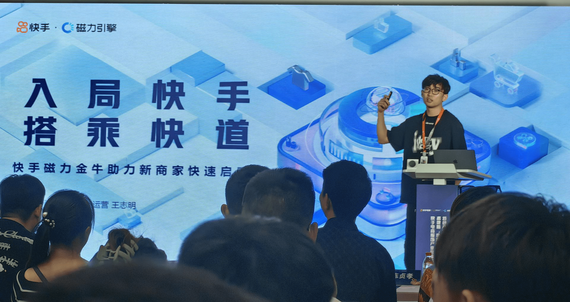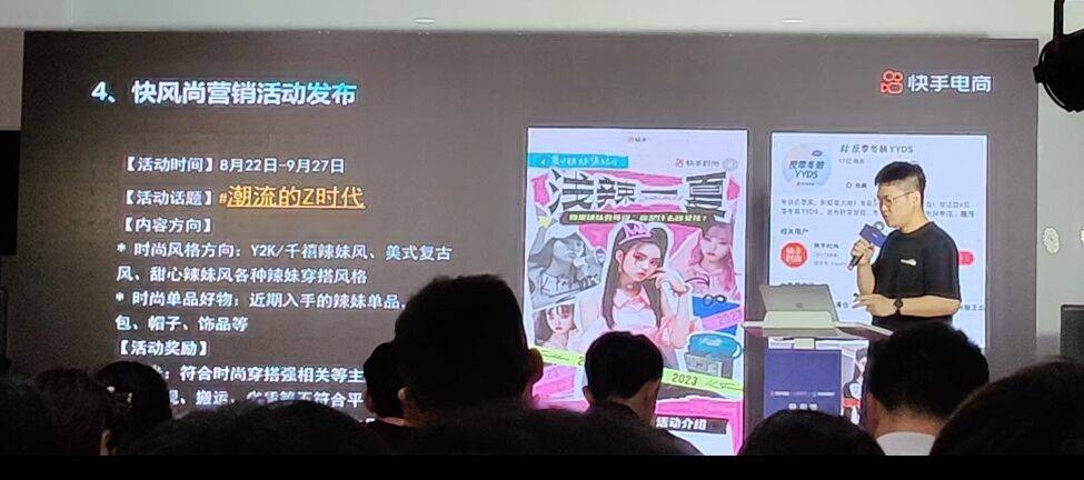 紧接着,“快风尚——时尚杭州”启动仪式开始,快手电商商家发展部女装运营怀远介绍该活动内容。怀远表示,新商家入局快手电商可以享受几项扶持计划,如川流计划、新商家斗金计划、快质造、新商城爆款扶持政策等。怀远还介绍了当前快手电商的流量分布:核心在于关注页,发现页聚集的公域流量最多,精选页聚集的扶持流量最多。之后,怀远还介绍了女装优质案例商家,帮助在场商家更好地理解运营过程。