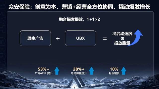 朱伊玲告诉「深响」,原生广告的特点是优质内容可以获得自然流量的分发增量和更低的计费比,自动化则能帮助有竞争力的创意素材实现更好的跑量。巨量引擎推出了场景级自动化解决方案UBX系列,其中具体应用于线索收集场景下的UBL,帮助众安实现了对高潜力素材的更充分的探索。