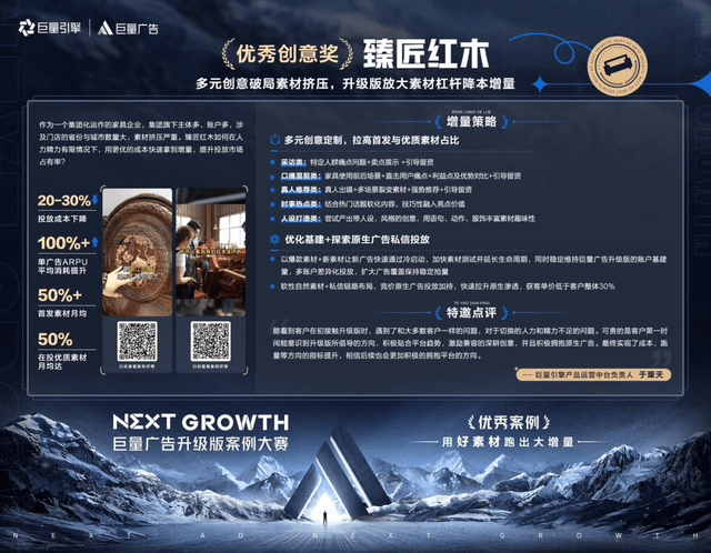 这样的样本还有很多。围绕创意素材、原生探索、自动化投放三大重点,臻匠红木、小精英夏令营、创艺装饰、猿辅导、光晨、蕉内、蕾特恩等来自不同行业的广告主也贡献了相应的实践。它们的实践各有侧重,但都深度结合了自身行业特点,且都用增长成绩佐证了升级版的价值。