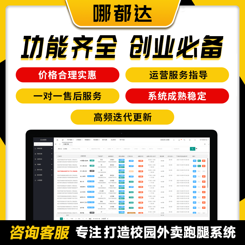 首先,校园外卖平台运营商只需购买系统即可直接在线运营,安全性无法保证。而哪都达校园平台则由专业科技公司的技术人员独立开发,并创建了自己的小程序。系统稳定且安全性高,是大学生校园生活服务平台的最佳选择。
