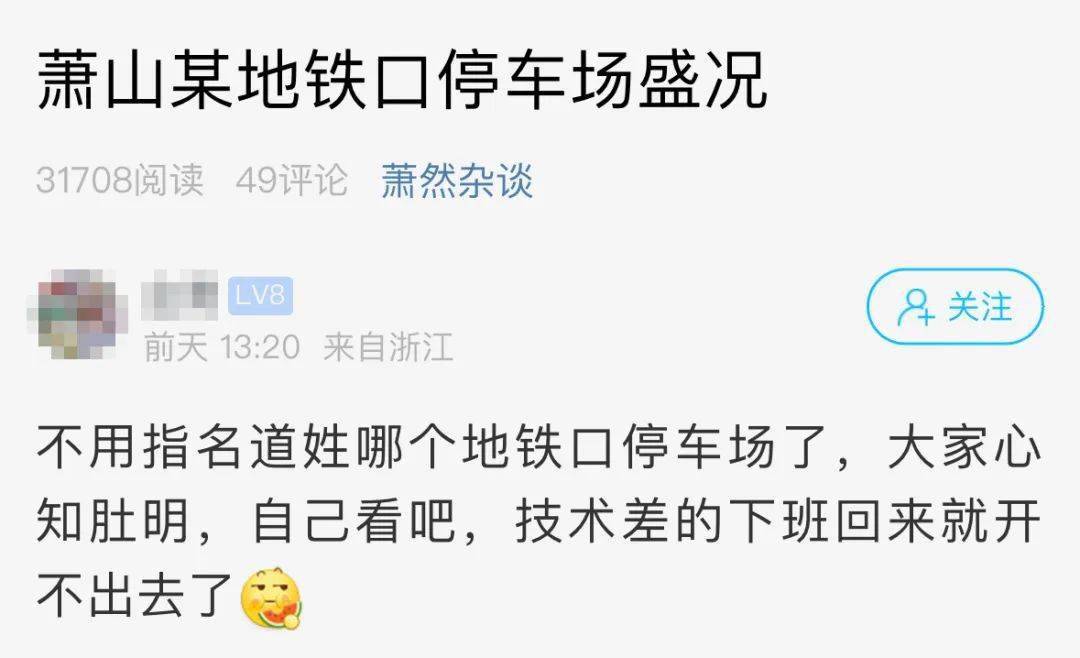 萧山某地铁口停车场盛况,技术差的下班回来就开不出去了。