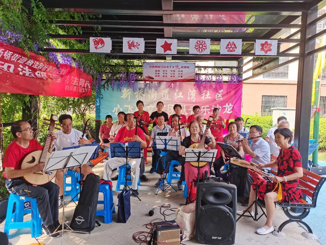 “年纪大了,就图个热闹。”周三是江湾社区“心飞乐”乐团固定排练日,72岁的居民高国喜早早就到小区楼下的邻心亭排好位置。二三十平方米的邻心亭,原来是个荒废的玻璃房。社区干部组织物业和居民骨干一起动手,将其改造成邻里客厅,使江湾社区居民有了与邻里聊天、休闲娱乐的好去处。