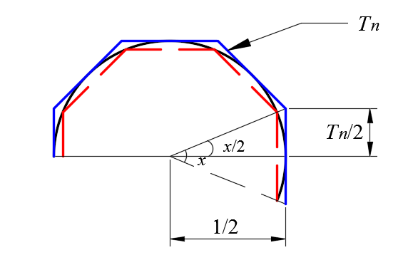 如下图所示,易得,外切多边形的边长为Tn=tan(x/2)。