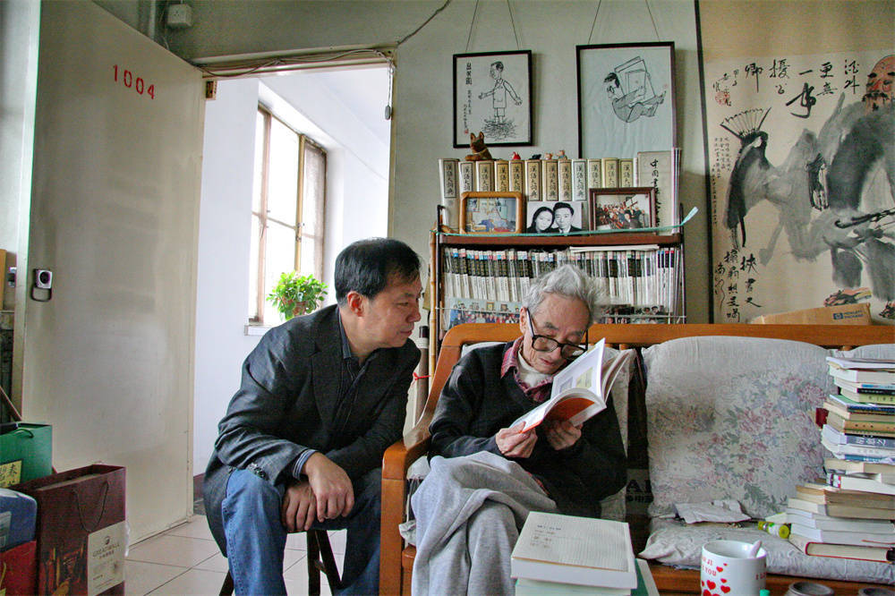2009年,范用(右)与汪家明,在范用家客厅。