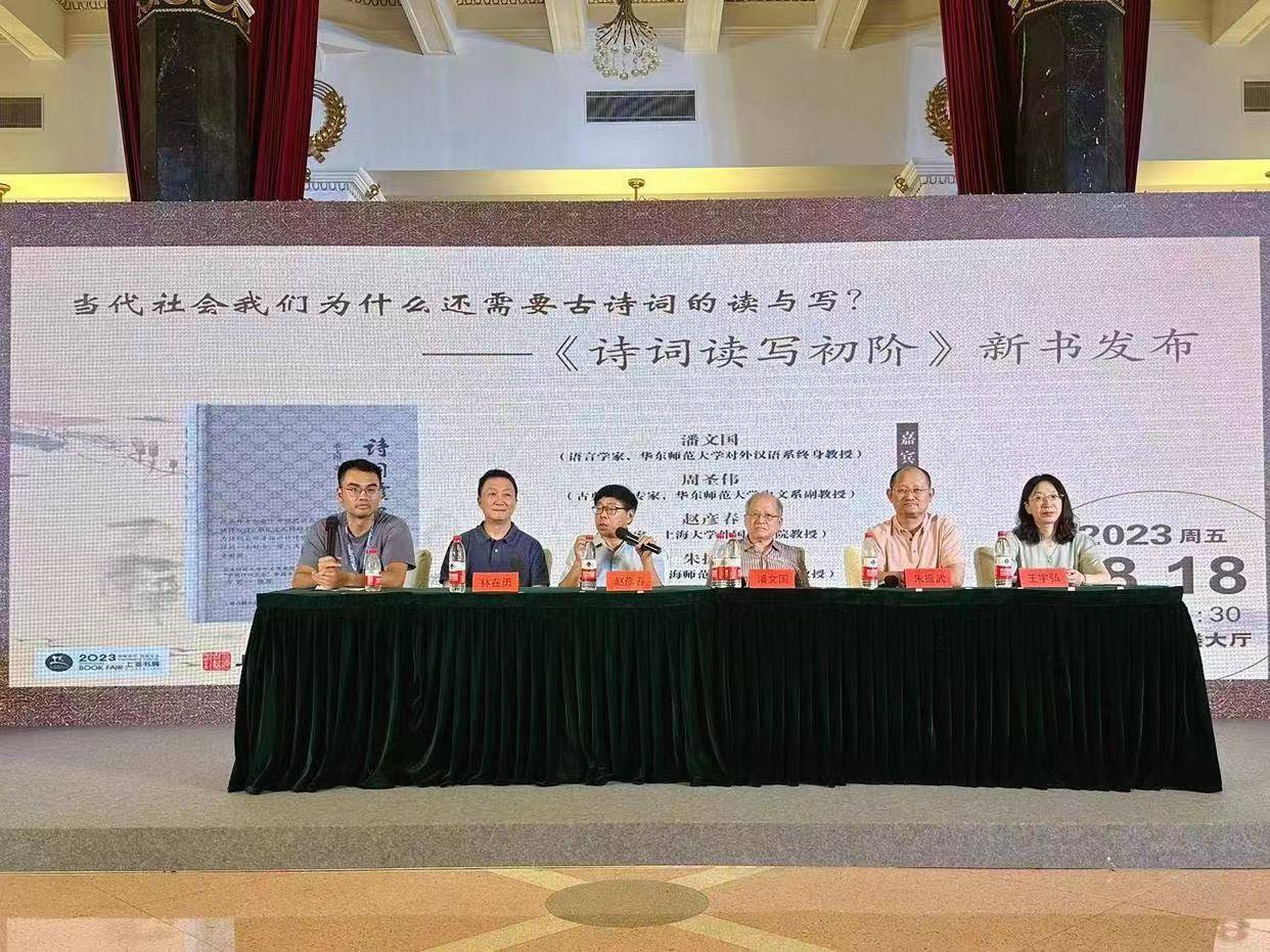 古典诗词的格律与规则,是束缚中国文学语言创造力的镣铐与枷锁吗?学习旧体诗词的创作,对当代人的还有没有意义? 8月18日,“当代社会我们为什么还需要古诗词的读与写?——《诗词读写初阶》新书发布签售会” 在友谊会堂一楼大厅举行,华东师范大学对外汉语系潘文国教授与著名翻译家赵彦春、朱振武及旧体诗人林在勇等一起就新作《诗词读写初阶》与诗词创作的当代意义等问题与读者进行交流。
