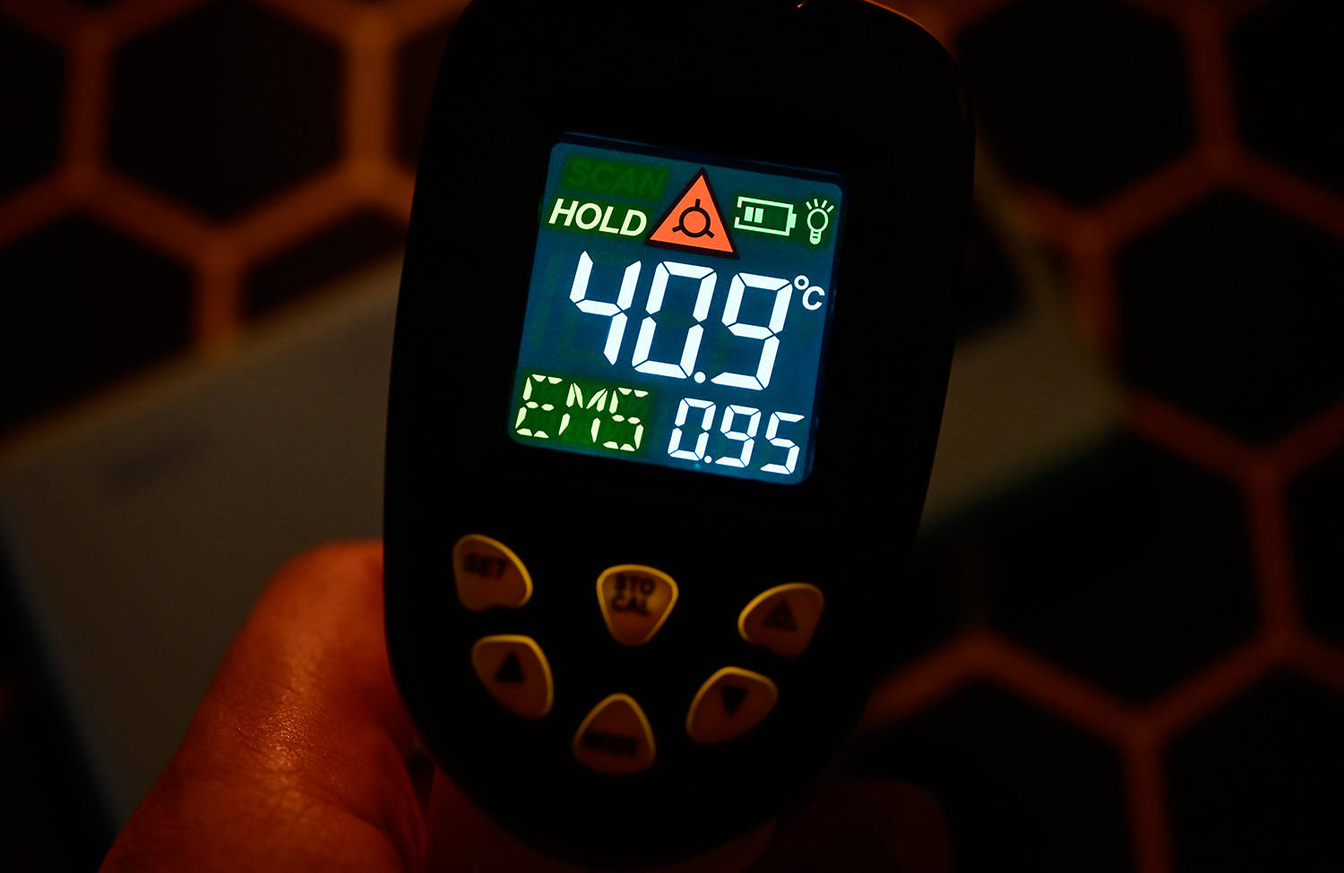 4局之后,大概28分钟,40.9摄氏度,手部已经有一定感受。