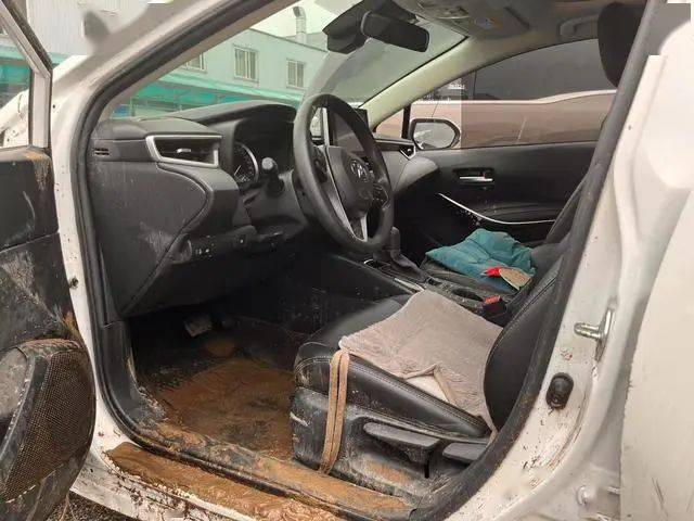 “昨天刚来的时候,车上全是泥、草、小木棍。”邵铁军指着一辆面目全非的白车说。这辆泡水车的损伤程度相当高,尽管已经做了简单清洁,车头依然挂有杂草、泥巴等,地毯上、车座底盘都是泥水,后备箱也进了杂物。