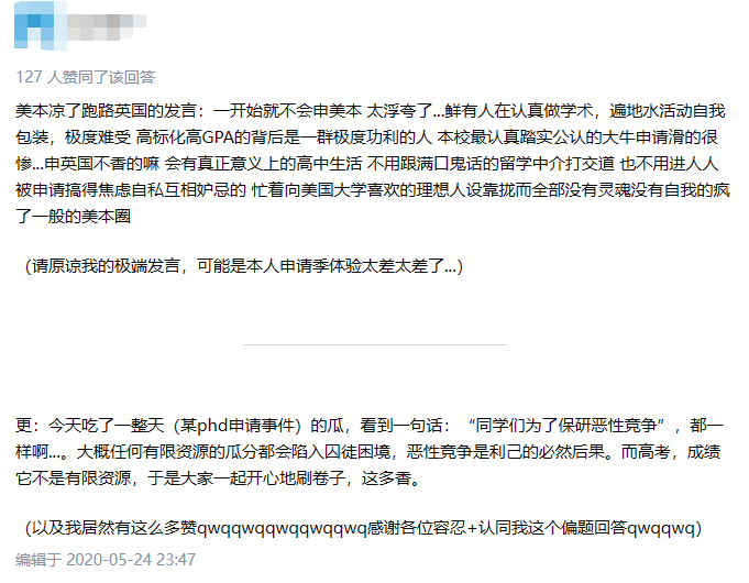这个同学对美本看来怨念很大,虽然这么说,但是美本里做学术的人也大有人在,但是随着美本越来越卷,标化成绩居高不下,发挥空间不大...只能卷科研卷活动卷实习...而更偏向于纯学术的同学不妨考虑英本