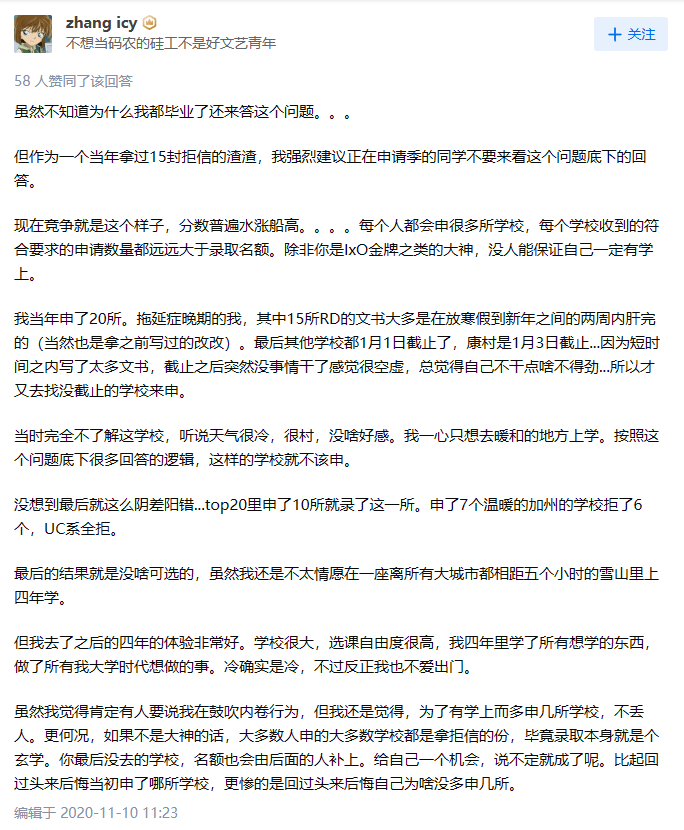 最后分享一下第一位答主的最后一段,希望与即将进入申请季的你与君共勉💚——