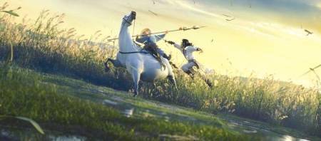 电影《长安三万里》中李白挥剑与高适激斗的场景。