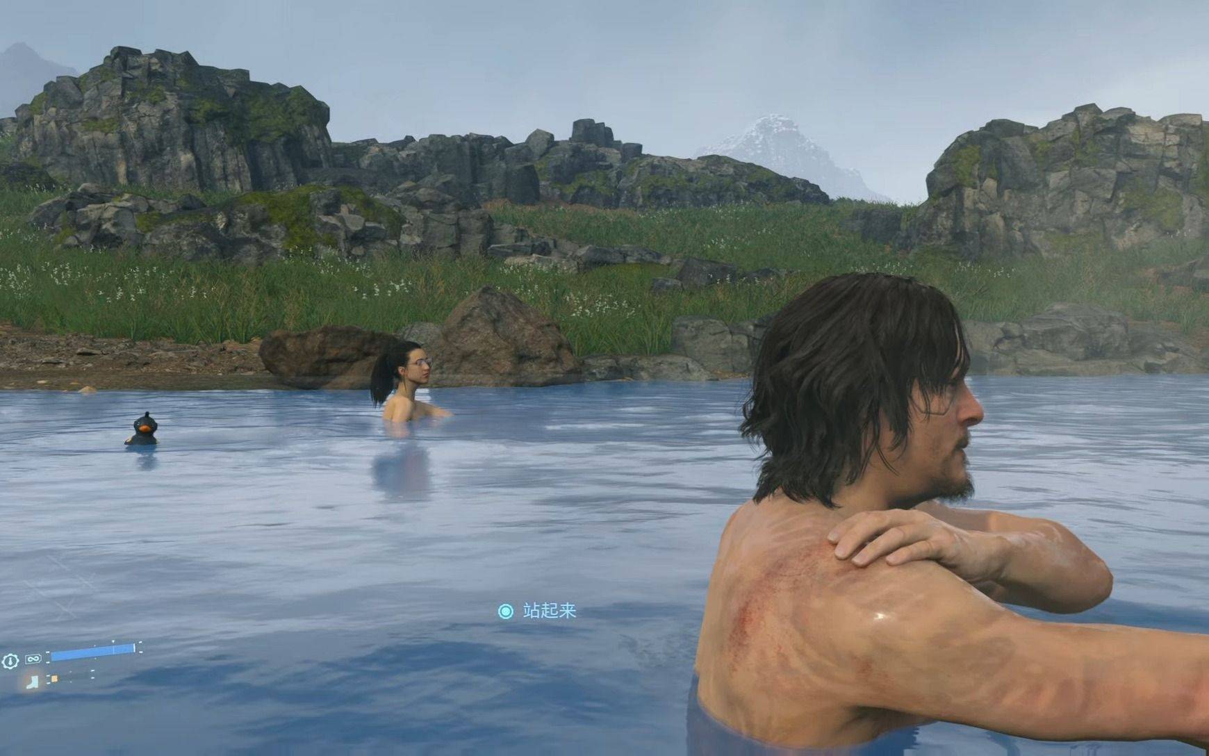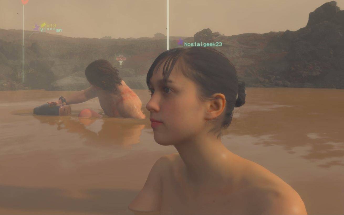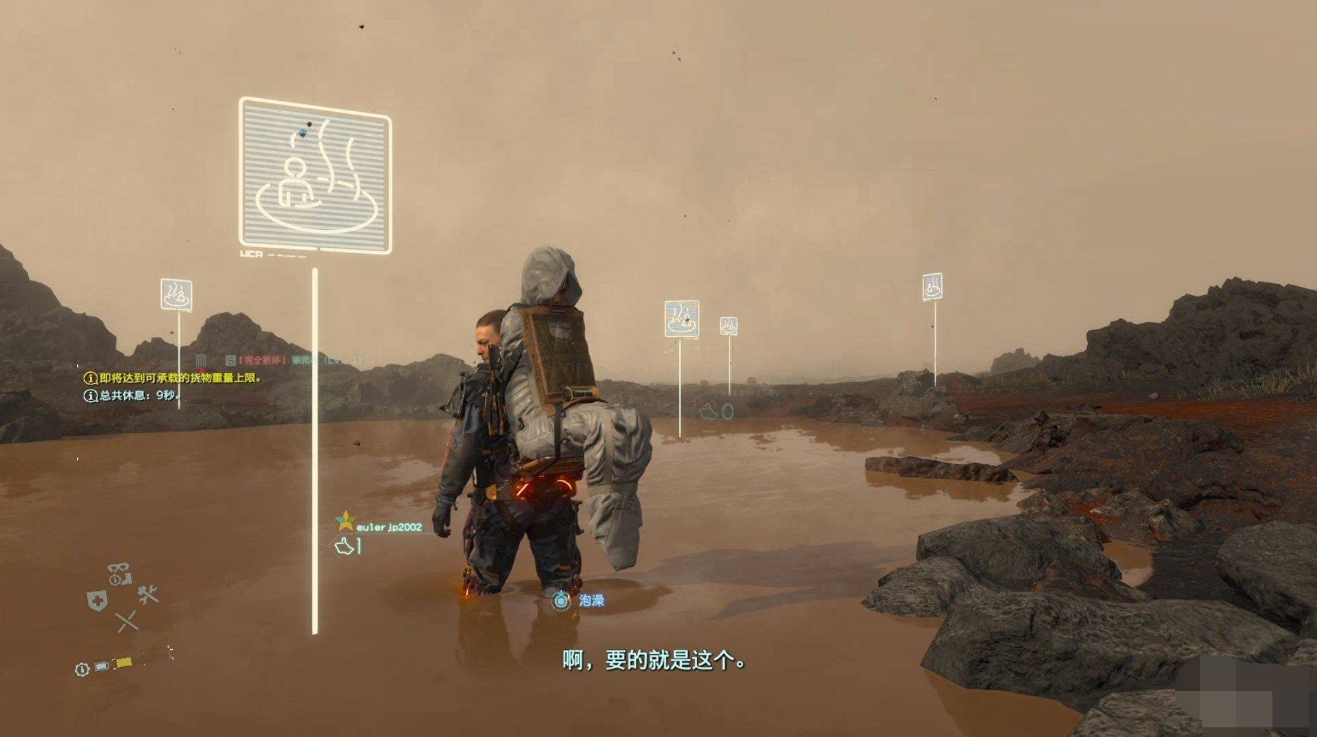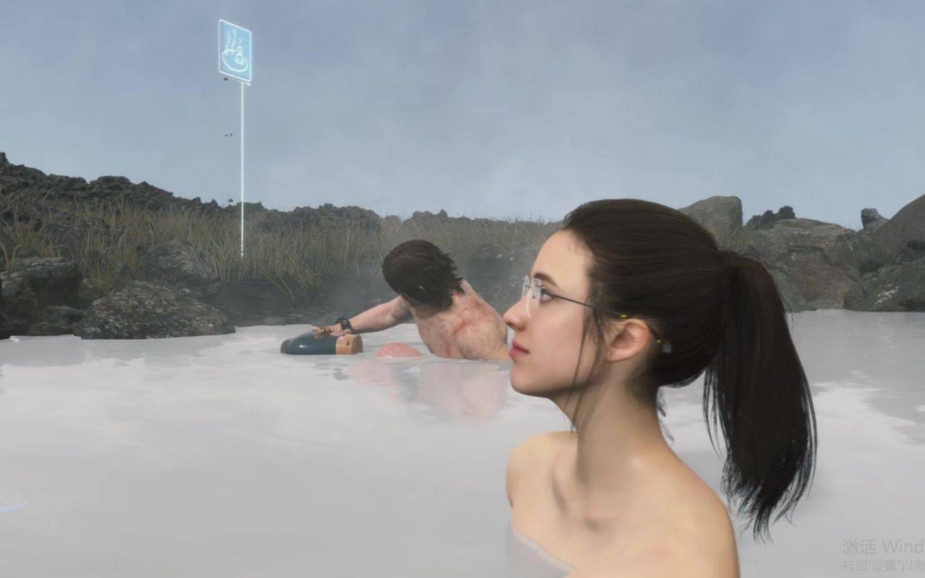例如在《死亡搁浅》游戏中,就有一个护送客户的剧情,还有个泡温泉的玩法。