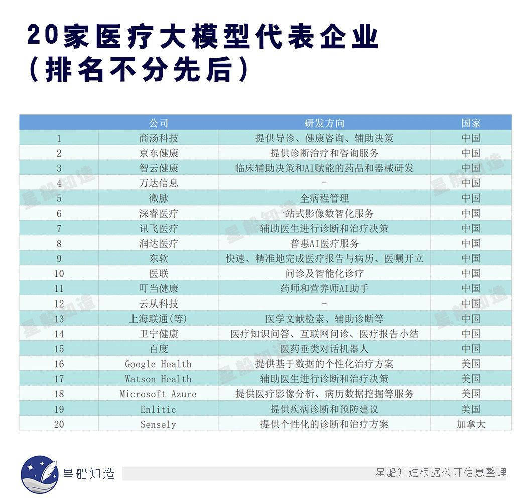 从全球市场来看,医疗领域AI产品和大模型也不断涌现。