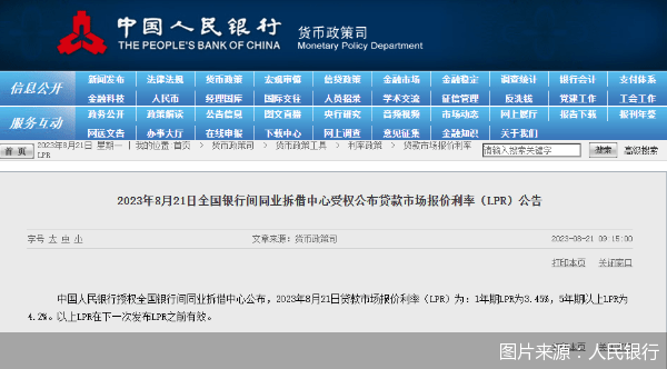 8月21日,中国人民银行授权全国银行间同业拆借中心公布,8月贷款市场报价利率(LPR)为:1年期LPR为3.45%,相较上月3.55%下调10个基点;而5年期以上LPR则为4.2%,相较上月4.2%仍保持不变。以上LPR在下一次发布LPR之前有效。