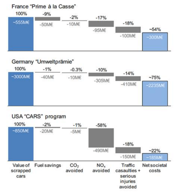 法国的计划成功地锁定了正确的报废车辆,估计可收回约45%的社会成本。