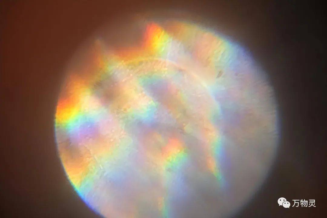 当入射光穿过二氧化铜形成的光学层时,会发生干涉现象。根据波长与干涉程度的关系,不同波长的光将以不同的方式干涉,从而呈现出七彩的光斑。这是因为不同波长的光在干涉现象中会发生相位差,使得光的干涉纹样式产生变化。