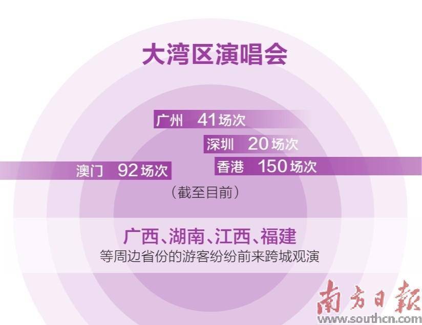 张毅指出,大湾区城市群内交通便捷、文旅配套设施成熟,跨城观演也能满足大部分人对观看演唱会的预算、距离等要求;此外,大湾区对周边城市的辐射能力强,能吸引广西、湖南、江西、福建等周边省份的游客来跨城观演,这都将促进大湾区“演唱会经济”的发展。